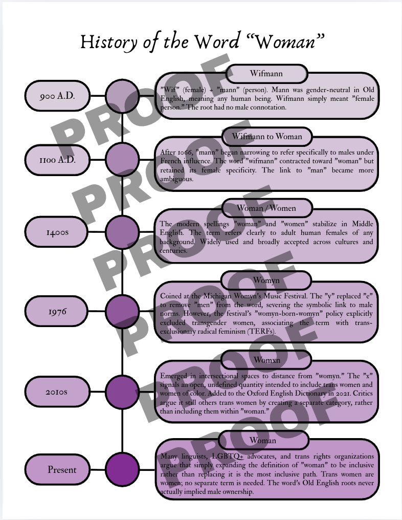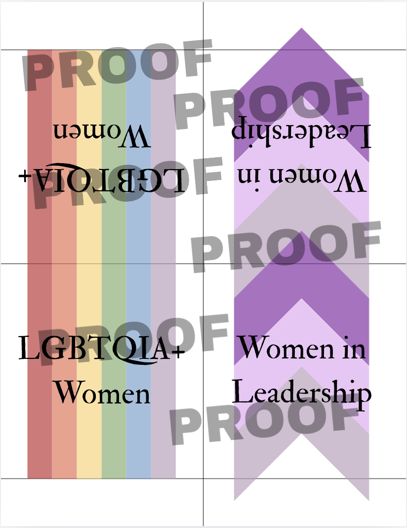 A part of the package they asked for were physical items to be given out or used during the event. This included designs for a tote bag and t-shirt to be ordered seperately, a flyer for the history of the word woman, and a design for table tents that could be assembled by volunteers. Finally they asked for physical thank you cards to give to the speakers and other comissions at the university as their support made the event possible.